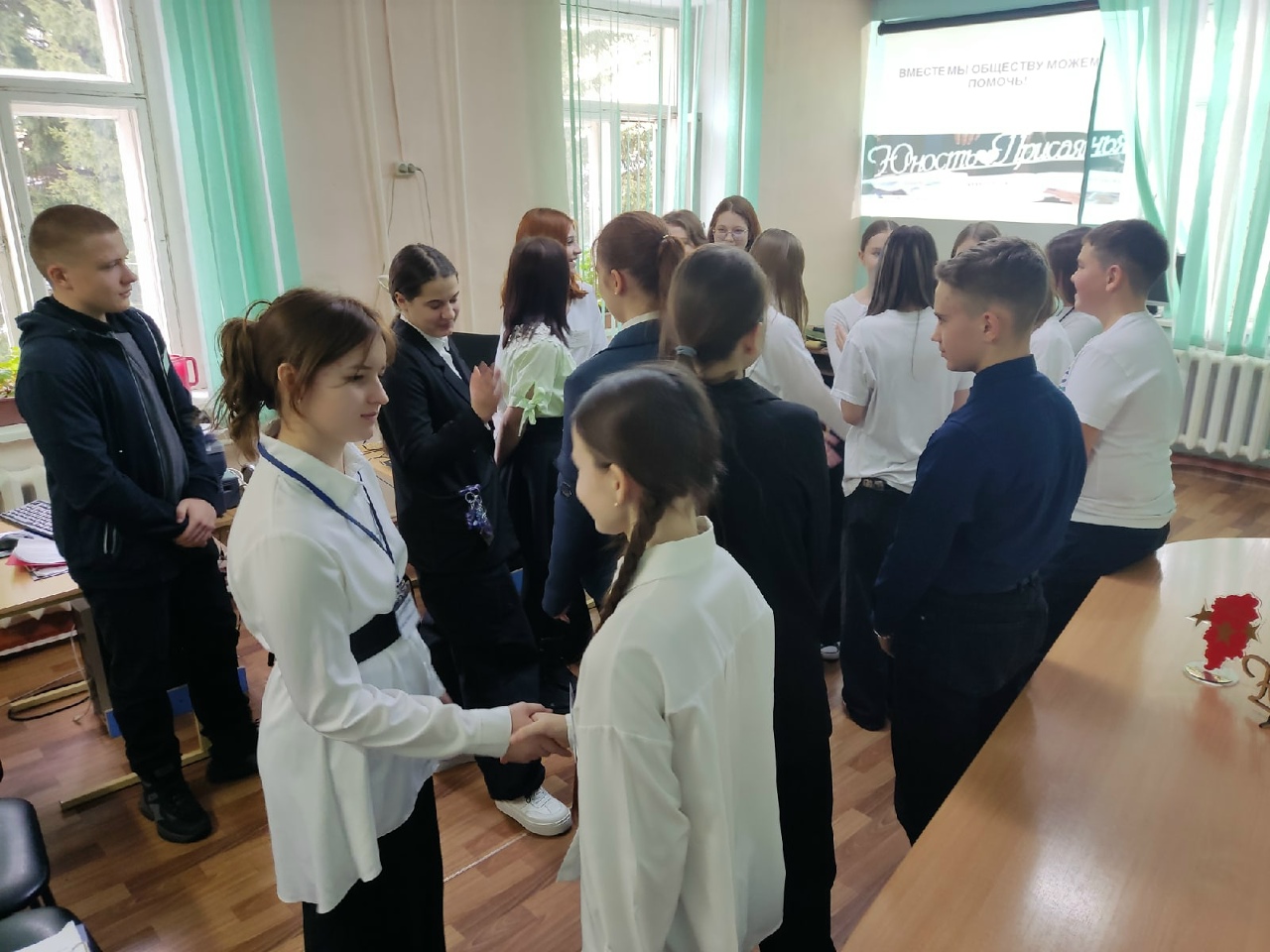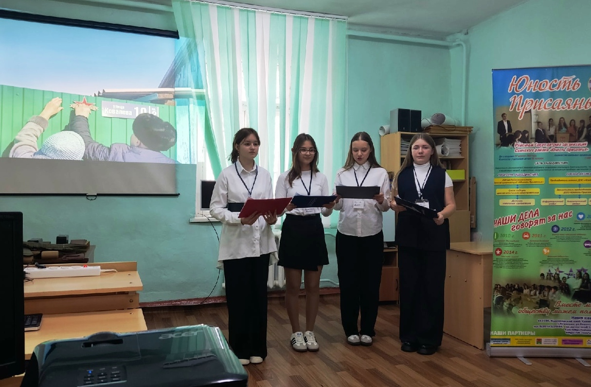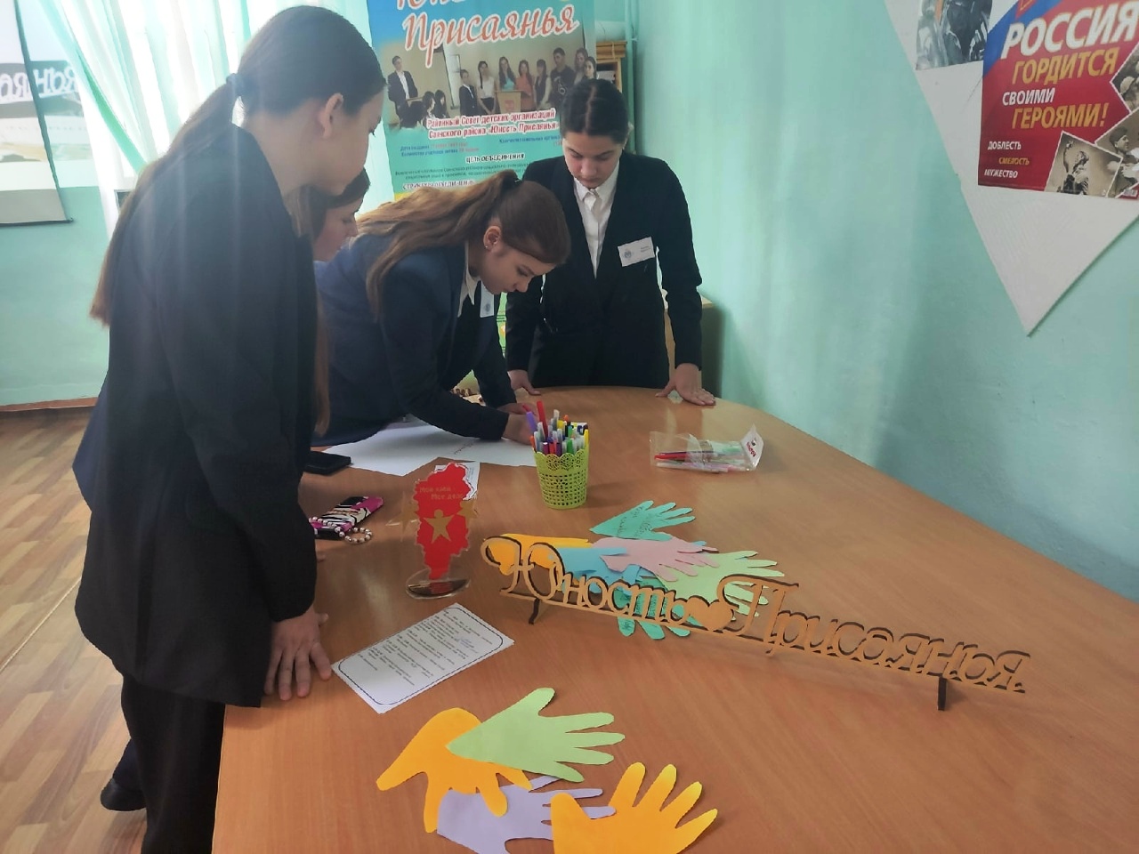 Активисты РДСО «Юность Присаянья» Григорьева Анастасия, Москвина Александра, Тарасова Алиса и Атлашкина Милана представили районную патриотическую акцию «СВОи Герои», которая реализуется с февраля 2025. Ребята напомнили о том, что акция направлена на увековечение памяти земляков–участников специальной военной операции через установку памятных звезд на домах и квартирах, погибших в специальной военной операции земляков и её реализация на территории Саянского района продолжается.