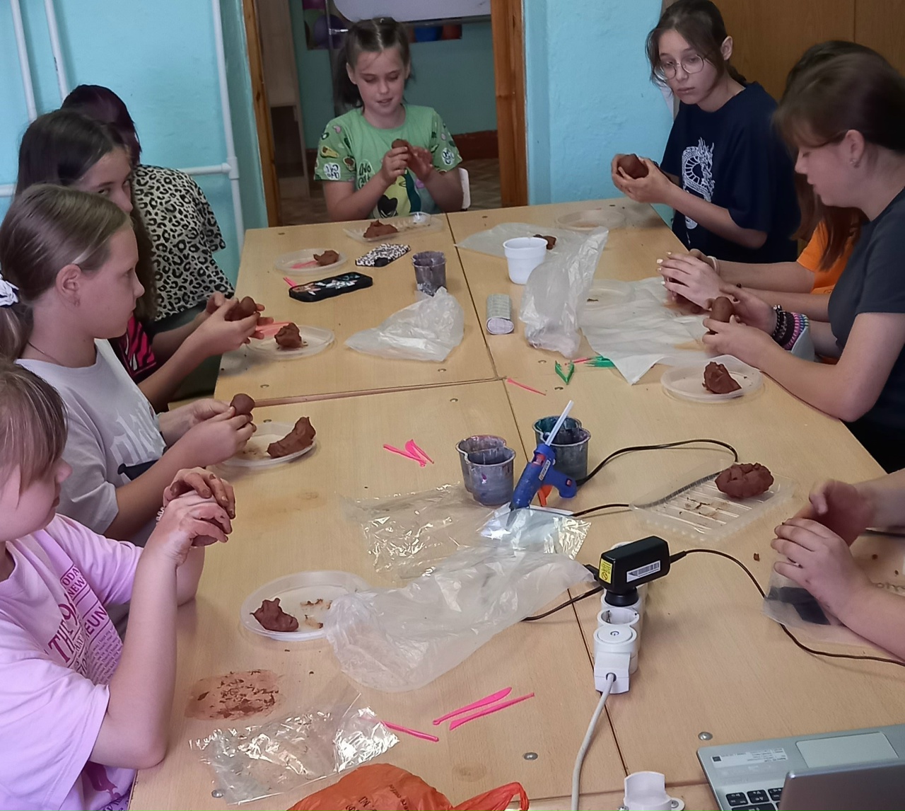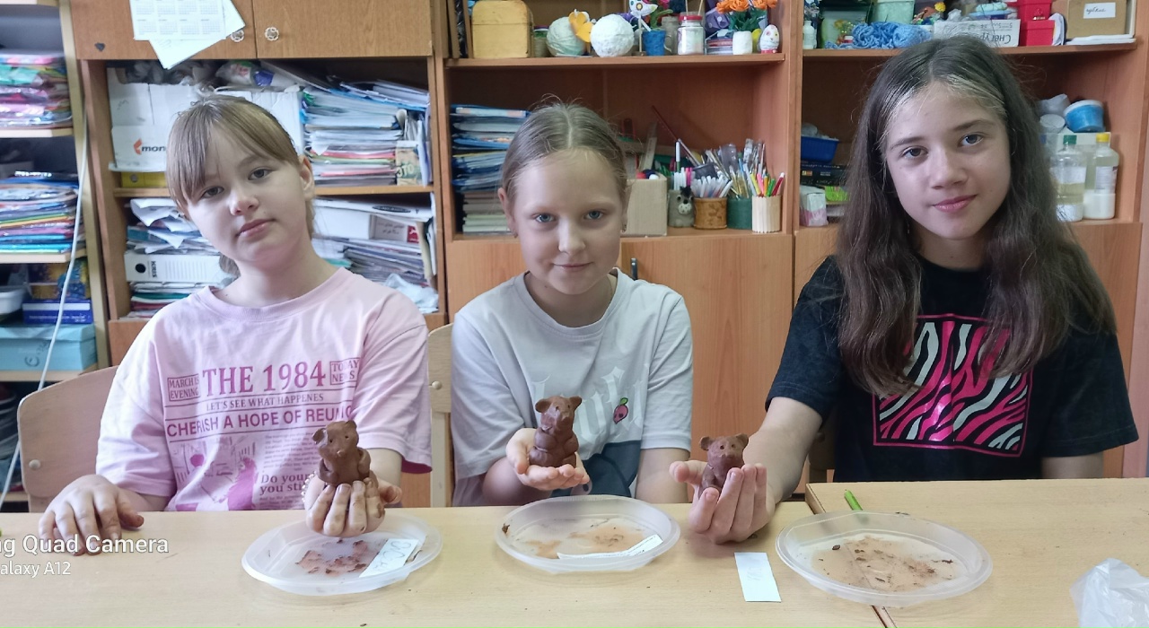 Также с неофициальными символами России познакомились ребята детских садов, для них были проведены мастер-классы, на которых маленькие ребята изготовили панно «Ромашки» из воздушного пластилина и слепили бурого медведя из глины.