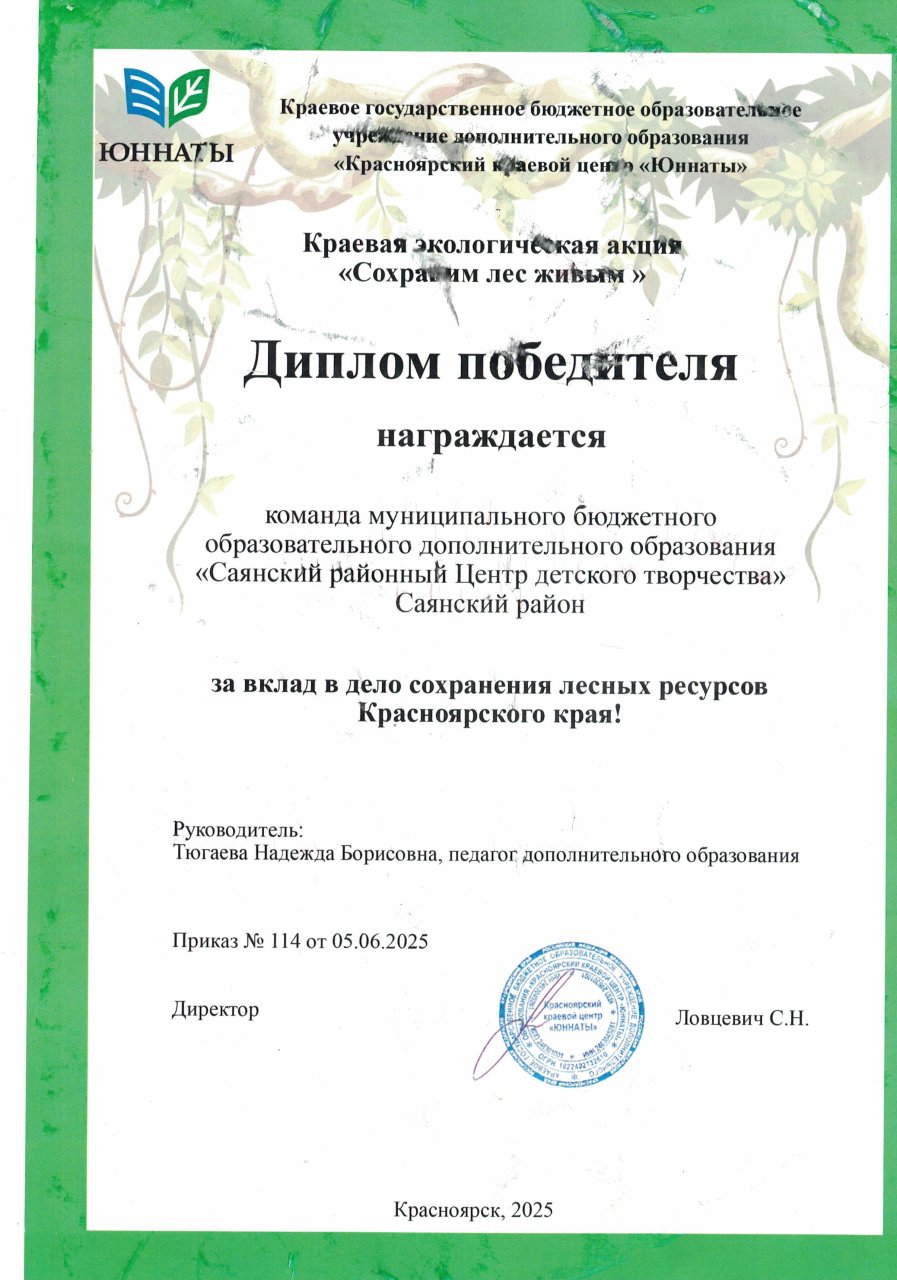 В рамках фестиваля они презентовали опыт организации и проведения в Центре детского творчества краевой экологической акции «Сохраним лес живым!». В рамках презентационной площадки состоялось награждение победителей акции дипломами и памятными подарками, ведь каждый из них проявил настоящие таланты и инициативу в деле защиты окружающей среды. В числе победителей и команда Центра детского творчества.